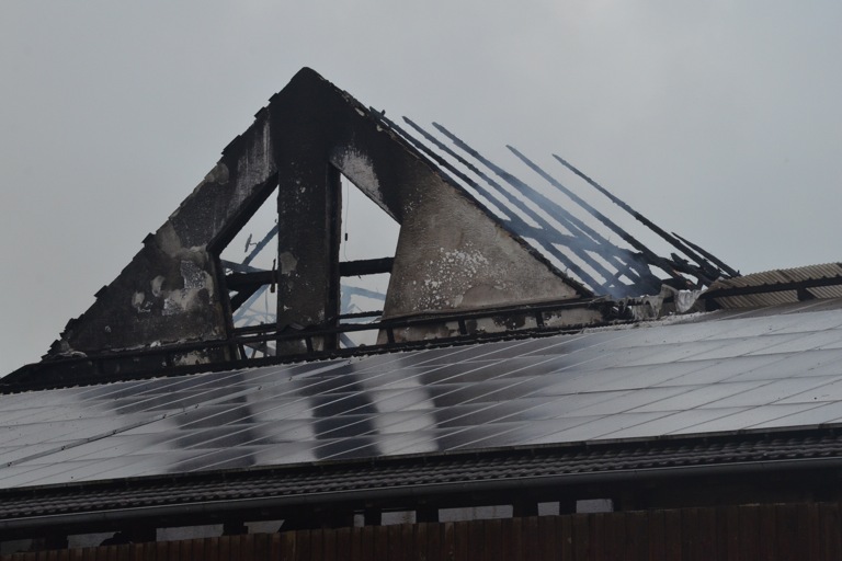 Gegen Mitternacht hatte heute Nacht der 53-jährige Landwirt das Feuer in der Stallung bemerkt und daraufhin die Rettungskräfte verständigt. Beim Eintreffen der ersten Feuerwehrleute stand der Dachstuhl des Gebäudes bereits in Flammen. Den Helfern bot sich am Einsatzort ein infernalisches Bild: Flammen schlugen weithin sichtbar in den Nachthimmel, Gebrüll von Rindern drang durch die Nacht. Die Tiere, die den Flammen entkommen konnten, waren völlig verängstigt, liefen wild durch die Gegend, mussten beruhigt und wieder eingefangen werden. Ein junges Rind schlüpfte in Panik durch den Drahtzaun, der das Areal umgibt, rannte verstört über die Straße. Dicke Rauchwolken stiegen in den Nachthimmel, der Dachstuhl des Gebäudes brach in sich zusammen. Auch heute stieg den ganzen Tag über noch weithin sichtbarer Rauch von der Brandstelle auf.