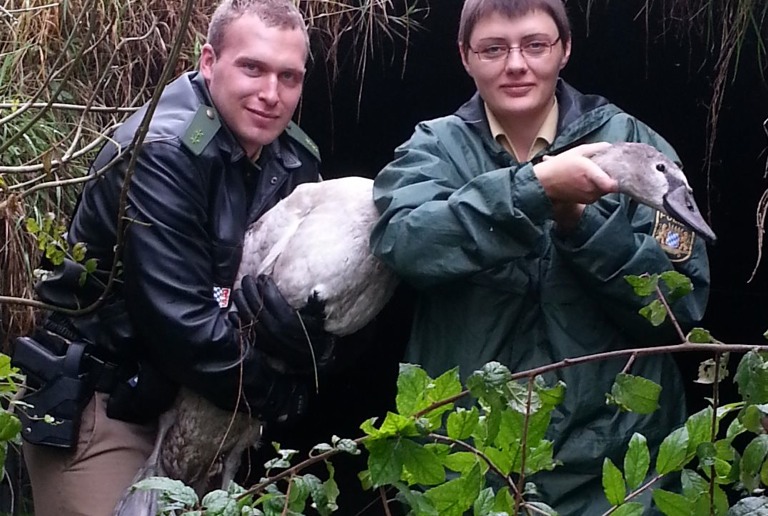 (ty) Von einem nicht ganz alltäglichen Einsatz berichtet die Landshuter Polizei: Die Beamten wurden zu einem entkräfteten Schwan gerufen. Der Fall ereignete sich bereits am Mittwoch an der Staatsstraße 2074 im Gemeindebereich Essenbach, wurde aber erst heute öffentlich gemacht. Der unverletzte Schwan befand sich auf einer schmalen Wiese zwischen der Staatsstraße und den Bahngleisen. Da zu wenig Startfläche und ein stolzes Körpergewicht einen Weiterflug unmöglich machten, konnte das Tier seine Reise nicht fortsetzen. Der junge Schwan war aber freiwillig nicht bereit, das Wiesenstück zu verlassen und auf die andere Straßenseite zu wechseln. Dort hätte er eine geeignete Startbahn vorgefunden. Die Polizisten mussten deshalb versuchen, das Tier einzufangen. Nach einem kurzen "Ringkampf“ gelang dies auch und somit konnte das Tier in die Freiheit entlassen werden. Fazit des Einsatzes: Ein glücklicher Schwan und drei Polizisten, die ihre verdreckte Uniform wechseln musste.