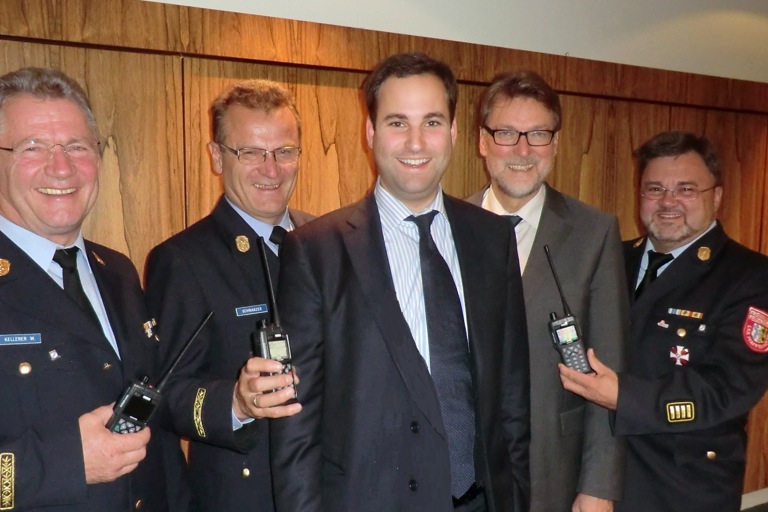 (ty) Die ersten digitalen Handfunkgeräte haben Landrat Martin Wolf (CSU) und der zuständige Abteilungsleiter Niklas Hafenrichter jetzt stellvertretend für die gesamte Kreisbrandinspektion an Kreisbrandrat Armin Wiesbeck sowie die beiden Kreisbrandinspektoren Willi Kellerer und Franz Schwarzer übergeben. „Mit der neuen Geräteausstattung kann wesentlich sicherer und zielgenauer die Information gebündelt und übertragen werden“, so Wolf. Bis Ende des Jahres werden auch die meisten Feuerwehren und Hilfsorganisationen im Landkreis entsprechend umgestellt haben. Mit dem technischen Ausbau der Integrierten Leitstelle der Region 10 im ersten Quartal kommenden Jahres dürfte dann ein Großteil der notwendigen Umrüstungen erledigt sein, heißt es aus dem Landratsamt.
