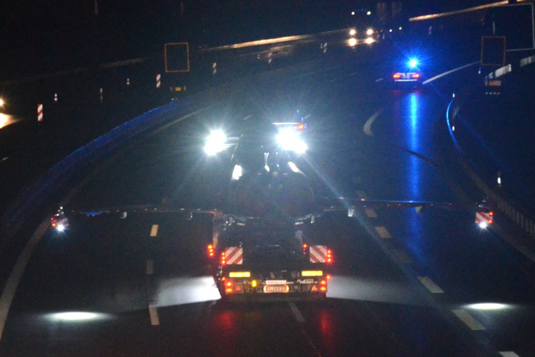 Die ganze Nacht über war der Schwertransport auf Tour – durch die Stadt Kaufbeuren zur B12, weiter Richtung A96 und schließlich auf der A9 gen Ingolstadt – bis er schließlich heute früh gegen 5.30 Uhr auf dem Bundeswehr-Gelände beim Flughaften Manching sein Ziel erreicht hatte. Begleitet wurde die außergewöhnliche Fracht von einem Großaufgebot der Ingolstädter Verkehrspolizei.