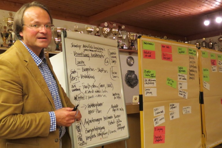 Beim Projekt-Workshop in Zusammenhang mit der Leader-Bewerbung des Landkreises wurde eine sinnvolle Vernetzung der bestehenden Buslinien angeregt – und die Möglichkeit für die Bürger, selbst mitzubestimmen. Denn Mobilität wurde auch als Voraussetzung für Lebensqualität gesehen.