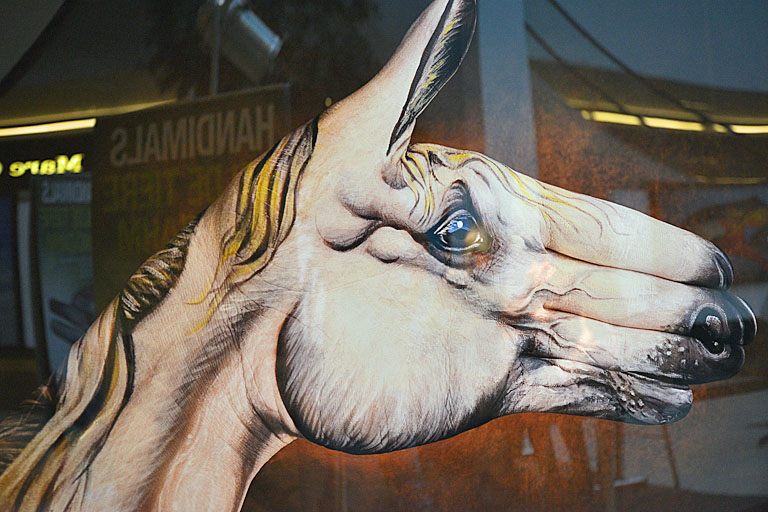 Der Mailänder Künstler Guido Daniele bemalt Hände mit fantasievollen Tieren – Und man kann ihm heute noch einmal auf der WestPark-Plaza live bei der Arbeit zusehen