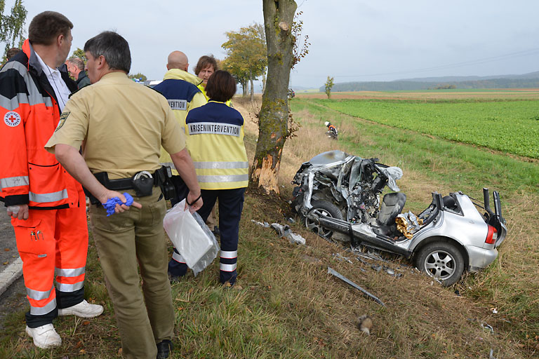 (ty) Jede Hilfe zu spät kam für einen 64-jährigen Mann aus Kösching, der – wie bereits kurz berichtet – gestern gegen 12.15 Uhr mit seinem Audi ohne fremde Beteiligung frontal gegen einen Straßenbaum prallte. Der Mann war auf der Staatsstraße von Oberdolling in Richtung Mendorf unterwegs, als er auf gerader Strecke nach rechts auf den Seitenstreifen geriet, wo er nach rund 80 Metern von dem Baum gestoppt wurde. Aus der Spurenlage waren auch keinerlei Ausweich- oder Bremsreaktionen ersichtlich. Durch den Aufprall, der offenbar mit sehr hoher Geschwindigkeit erfolgte, wurde der Mann, der definitiv nicht angeschnallt war, vermutlich sofort getötet. Er war in seinem total zerstörten Pkw eingeklemmt und musste von den Feuerwehren der umliegenden Orte befreit werden. Zur Klärung der Unfallursache wurde von der Staatsanwaltschaft ein Gutachter an die Unfallstelle beordert. Zeugen des Unfalls gibt es nicht.