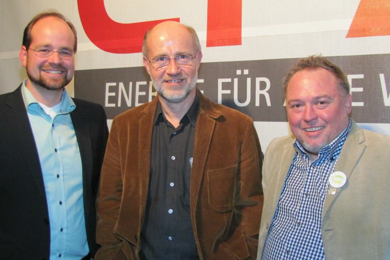 Bürgerenergie-Genossenschaft-Chef Andreas Herschmann (von links), Professor Harald Lesch und Markus Käser, Vorstandsvorsitzender des bayerischen Landesnetzwerks für Bürgerenergie.