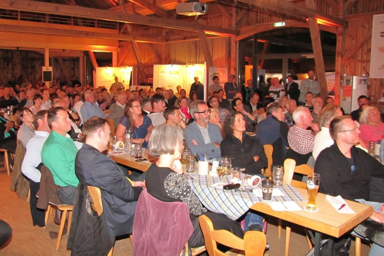 Rappelvoll war der Stockerstadl gestern Abend beim Vortrag von Professor Harald Lesch und der Vorstellung des Bürgerwindrad-Konzepts.