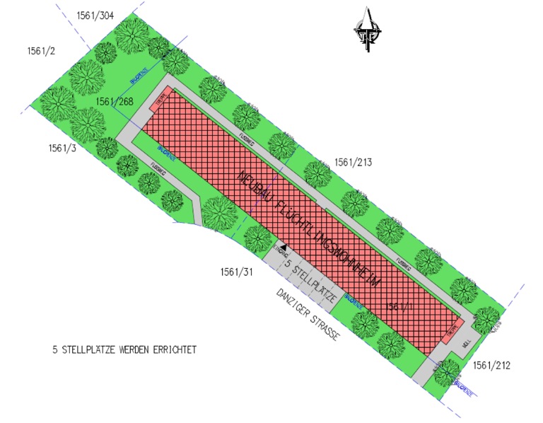 Nach eingehender Prüfung kommt man im Rathaus unterm Strich zu folgender Beschluss-Empfehlung an den Bauausschuss: „Das Einvernehmen zum Antrag auf Baugenehmigung zum Neubau eines Wohnheimes für Flüchtlinge in der Danziger Straße wird verweigert.“ Das Vorhaben stehe im Widerspruch zur Mischgebietsfestsetzung des Bebauungsplans sowie zur festgesetzten Baugrenze. Auch fehle es an einem nachvollziehbaren Nachweis der Einhaltung einer lärmtechnischen Festsetzung. Hierzu sowie zu Abweichungen von den Vorschriften der Stellplatzsatzung solle gleichfalls das Einvernehmen verweigert werden.
