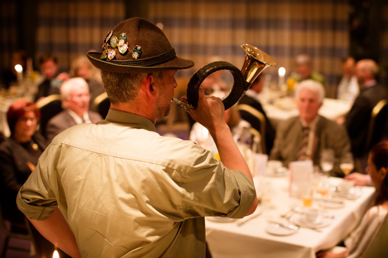 Ein stimmungsvolles Rahmenprogramm für die Auftaktveranstaltung lieferten die Jagdhornbläser aus den Reihen der Jägervereinigung. Großes Lob verdienten sich Küchenchef Sven Tweer und sein Team für das aus Wildschweinterrine, Maronenschaumsuppe und Rehrücken bestehende Menü – von diesem Gaumenschmaus zeigten sich die Gäste begeistert. Als weitere Besonderheit wurde zu jedem Gang ein anderes, zum Gericht passendes Bier von Müllerbräu gereicht.
