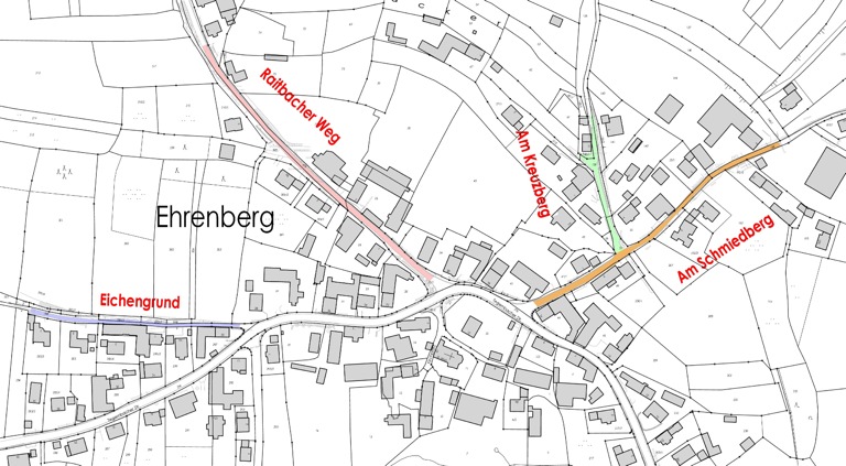 Die Stadtverwaltung hatte jedenfalls im März in Ehrenberg eine Info-Veranstaltung für die Bürger abgehalten – mit dem Ergebnis, dass die sich lediglich für eine Deckensanierung der betroffenen Straßen („Am Schmiedberg“, „Am Kreuzberg“, „Raitbacher Weg“ und „Eichengrund“) ausgesprochen haben.