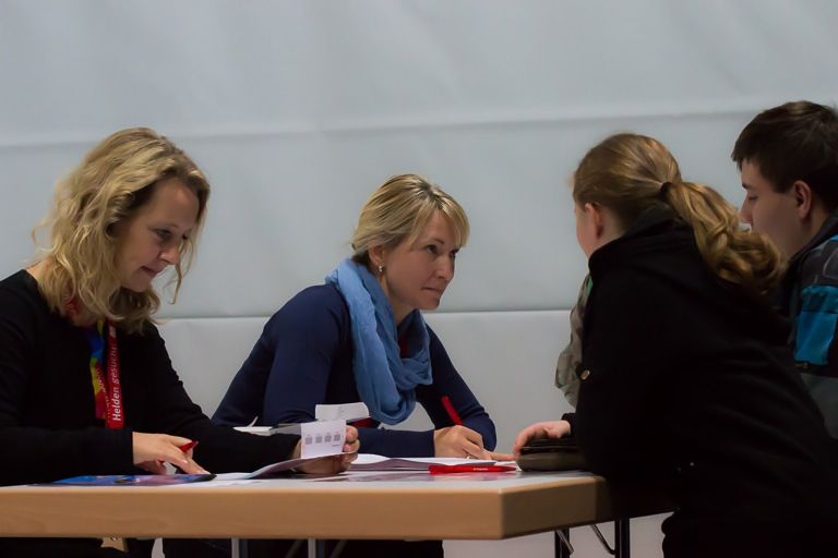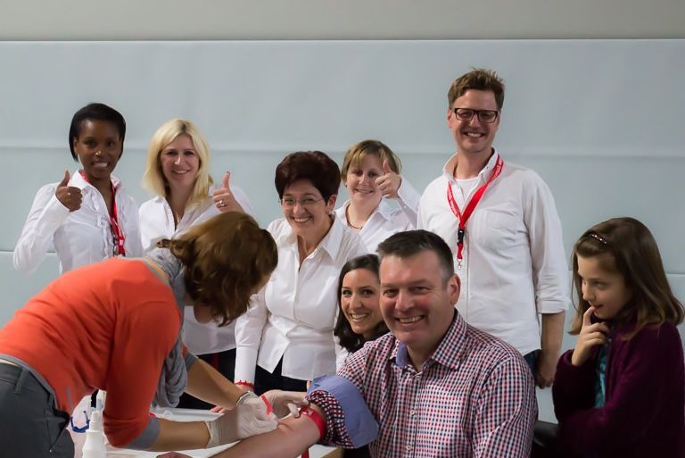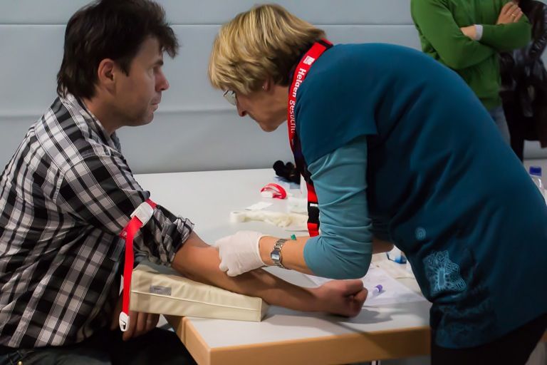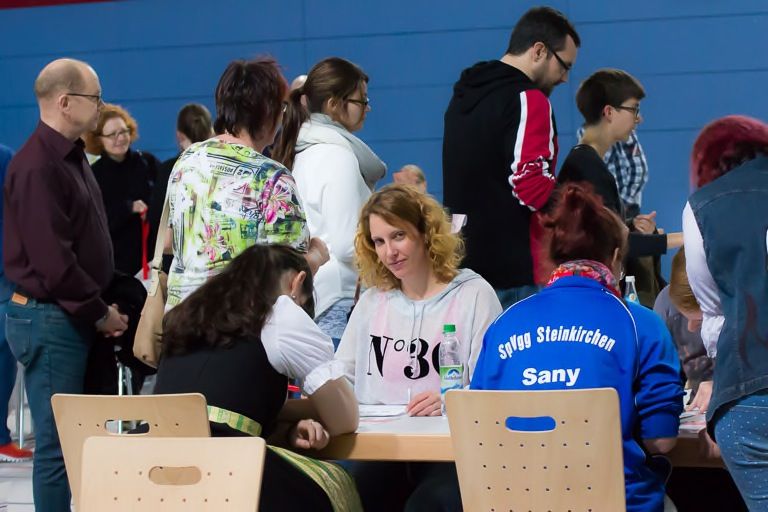 An zehn Beratungstischen im hinteren Teil der Halle erklärten Betreuer den Ablauf und die Hintergründe der Typisierung und einer möglichen Stammzellspende. 15 Arzthelferinnen und vier Ärzte nahmen innerhalb von vier Stunden 363 Mal Blut ab. Insgesamt waren heute 75 Helferinnen und Helfer im ehrenamtlichen Einsatz.