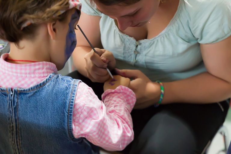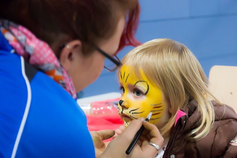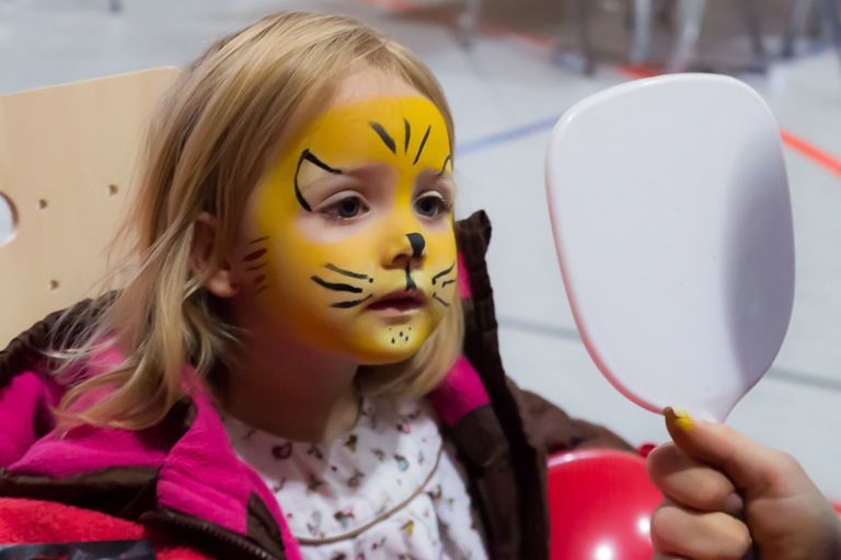 Eine Trennwand teilte die Ilmtalhalle heute in zwei Bereiche. Im vorderen Teil spielte die Musikkappelle Steinkirchen und wahre Künstlerinnen verwandelten Kinder mit Schminke in kleine Tiger oder Schmetterlinge. Freiwillige verkauften fast 40 Kuchen, dazu Leberkäs-Semmeln und Getränke. In nur 45 Minuten waren 900 Tombola-Lose verkauft; so wurden zusätzliche. Spendengelder akquiriert. Den die Blutuntersuchungen kosten Geld. Zu gewinnen gab es interessante und lukrative Preise – allen voran: einen Hotelaufenthalt in Saalbach-Hinterglemm.