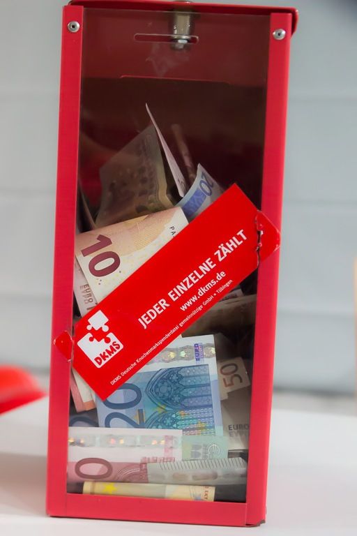 Die Deutsche Knochenmarkspenderdatei (DKMS) ist für den weiteren Ausbau der Datei auf Geldspenden angewiesen. Denn obwohl die Kosten, die für die Registrierung anfallen, im Laufe der Zeit deutlich gesunken sind – von anfänglich 600 DM auf heute 50 Euro – müssen sie dennoch aus Spenden generiert werden. Wer die Aktion finanziell unterstützen will, kann auch einen Betrag auf folgendes DKMS-Spendenkonto einzahlen. IBAN: DE92 7215 1650 0009 2597 06, BIC: BYLADEM1PAF, Stichwort: RHX 001