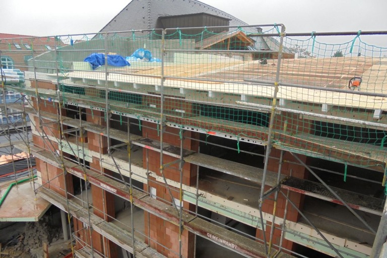 „Sehr erfreulich daran ist, dass der Neubau der Paritätischen Altenhilfe absolut im Zeitplan liegt, denn in den unteren Etagen waren und sind die Installationsfirmen schon bei der Montage, obwohl die oberen Stockwerke noch nicht fertig waren“, so ein Sprecher der Altenhilfe. Inzwischen ist auch schon der Dachstuhl errichtet und nun fehlen noch die Abschlussarbeiten zur endgültigen Fertigstellung des Dachs. Auch der neue Verbindungsgang zwischen Neubau und Erweiterungsbau ist bereits in Arbeit. Wenn das Wetter noch eine Zeitlang mitspielt, soll auch der Einbau der Türen und Fenster noch vor dem Winter abgeschlossen sein, heißt es.