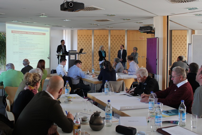 Am Samstag schloss sich dann die Planungswerkstatt mit Vertretern aller fünf Kommunen zur Zusammenführung der in den Gemeinden gesammelten Vorschläge an. Begleitet vom Stadtplaner-Team der Dömges-Architekten und moderiert von Stephanie Utz wurden von den Teilnehmern, darunter die jeweiligen Bürgermeister und viele Gemeinderäte, aus den in den Gemeinden geäußerten Wünschen konkrete Ziele formuliert und – nach Handlungsfeldern geordnet – gemeindeüberschreitend konkrete Projekt-Ideen entwickelt.
