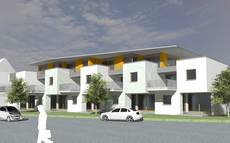 Wo jetzt noch das BRK-Gebäude steht, das bald ausgedient hat, könnte bald dieses moderne Wohnhaus errichtet werden. Dieser Vorschlag gewann den Architekten-Wettbewerb.