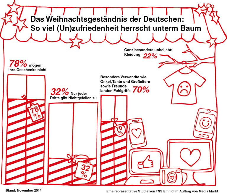 Media Markt hat eine Umfrage bei Emnid machen lassen: Rund 80 Prozent sind unzufrieden mit ihren Geschenken