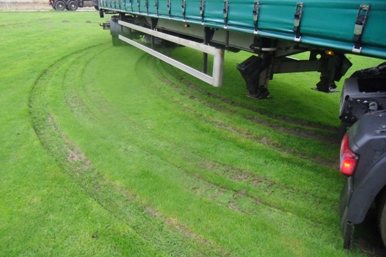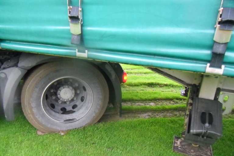 Im Pfaffenhofener Ortsteil Förnbach wollte ein Brummi-Lenker komfortabel umkehren, grätschte aber den Rasen kaputt und blieb am Ende auch noch stecken