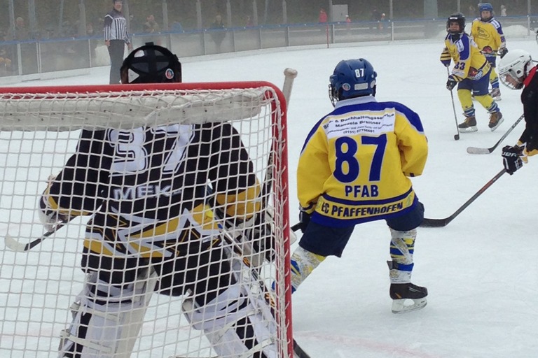 (ty) An diesem Doppelspiel-Wochenende musste das Eishockey-Kleinschüler-Team des EC Pfaffenhofen die erste Niederlage in dieser Saison hinnehmen, konnte aber auch einen komfortablen Auswärtssieg feiern. Gestern unterlag die U12 durch einen Last-Minute-Gegentreffer im eigenen Stadion mit 4:5 dem EV Dingolfing. Heute nun folgte ein 15:4-Schützenfest gegen den MEKJ in München, den man zuletzt allerdings noch mit 25:5 vom Eis gefegt hatte. Der EC Pfaffenhofen behält nach diesem Wochenende mit nun zehn Punkten und einem Torverhältnis von 92:23 die Tabellenführung vor dem EV Dingolfing, der zwar vier Punkte weniger auf dem Konto, aber auch zwei Partien weniger absolviert hat.