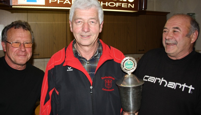 (ty) Kürzlich fand die diesjährige Vereinsmeisterschaft der Stockschützen von Geisenhausen auf den heimischen Bahnen statt. An dem Wettbewerb des seit 35 Jahren bestehenden Vereins nahmen 15 aktive Mitglieder in fünf Mannschaften teil. Über drei Runden mit insgesamt 24 Spielen wurde die Meisterschaft ausgetragen. Dabei konnte sich ein Team klar von den anderen absetzen. Die Mannschaft mit Alois Ott, Franz Bauer und Rudolf Koblofsky konnte bis zur letzten Kehre ihren Vorsprung behaupten und den Titel holen.
