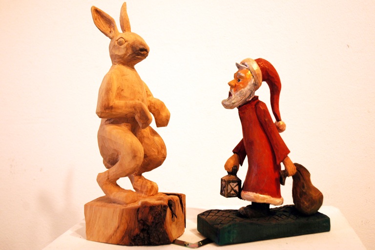 Die Schnitzer zeigen im Rahmen einer Ausstellung in der Städtischen Galerie von Pfaffenhofen, welche Werken im Rahmen der VHS-Kurse entstanden sind