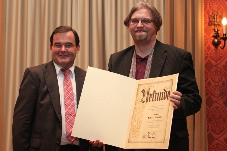 „Ihn interessieren Seelenlandschaften – und ich wage zu behaupten, dass er ein profunder Kenner der weiblichen Psyche ist“, erklärte Haiplik. Falco Blome „zeichnet Charaktere, die im Abseits stehen, gescheiterte Existenzen, denn ihnen gehört seine Sympathie“. Trotzdem verlasse man seine Stücke nicht traurig oder niedergeschlagen, denn Blome verstehe es, dem Weinen auch das Lachen hinzuzufügen. So gebe es auch immer amüsante Szenen, denn Theater solle auch Spaß machen. Haiplik attestierte dem Preisträger „großen Respekt vor dem Autor und dem Text, vor den Schauspielern und vor allem vor dem Publikum“. In seiner bescheidenen, zurückhaltenden Art führe Blome die Darsteller behutsam, aber konsequent, und zeige viel Gespür für die richtige Besetzung der Rollen.