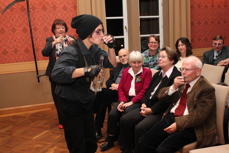 Die Schauspielerin Olivia Wendt alias Boandlkramer trank „Kerschgeist“ mit dem Publikum.