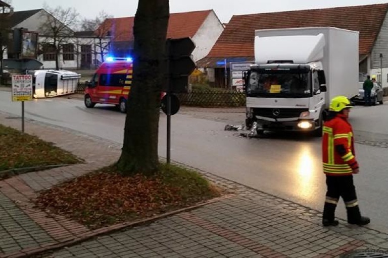 Kastenwagen kracht auf der Haupstraße mit einem Lkw zusammen und kippt um – zwei Personen verletzt