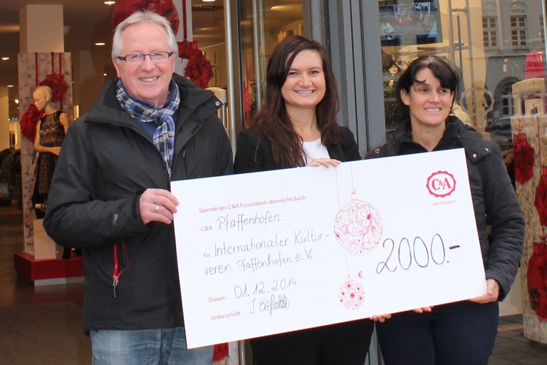 (ty) Familien mit Kindern stehen im Mittelpunkt der jährlichen Spendenaktion des Textilunternehmens C&A. Insgesamt mehr als eine Millionen Euro spendet das Unternehmen auch heuer für soziale und karitative Einrichtungen – je 2000 Euro pro Filiale. In Pfaffenhofen übergab Filialleiterin Irene Eisfeld jetzt auf Vermittlung von Bürgermeister Thomas Herker (SPD) die 2000 Euro an den Arbeitskreis Asyl des Internationalen Kulturvereins Pfaffenhofen.