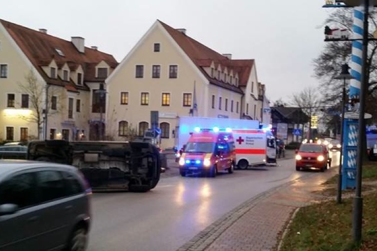 (ty) In Schweitenkirchen ist es zu einem spektakulären Crash gekommen, bei dem ein Kleintransporter nach dem Zusammenstoß mit einem Lkw umgekippt ist. Ein 59-Jähriger wollte mit seinem 7,5-Tonner-Lkw von der Dr.-Hans-Eisenmann-Straße nach links in die Hauptstraße einbiegen, übersah dabei den auf der Hauptstraße in Richtung Sünzhausen fahrenden Kleintransporter und es kam zum Crash. Durch den Zusammenstoß drehte sich der Kastenwagen quer gegen die Fahrtrichtung, kippte anschließend um, schlitterte noch einige Meter weiter und blieb schließlich auf der Seite liegen. Der 22-jährige Fahrer und der 25-jährige Beifahrer des Kleintransporters wurden glücklicherweise nur leicht verletzt. Beide konnten laut Polizei auch selbstständig aus dem Fahrzeug steigen. Der Fahrer des Lastwagens kam mit dem Schrecken davon.