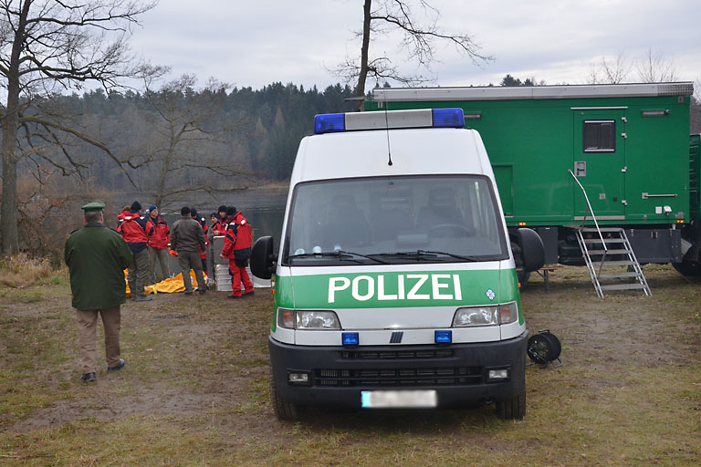 Zuvor war es am heutigen Prozesstag bei der Befragung weiterer Zeugen erneut darum gegangen, das Geschehen an dem Silvesternachmittag vergangenen Jahres aufzuhellen und die Frage zu beantworten, wie es zu dem Unglück kommen konnte. Das mit fünf Personen besetzte Boot legte bekanntlich gegen 13.45 Uhr ab – und sank kurz darauf. Die beiden damals 27 und 53 Jahre alten Frauen sowie der Bootsführer konnten sich ans Ufer retten. Der 70-jährige Jäger wurde vom zur Hilfe geeilten Teichgut-Besitzer mit Hilfe eines zweiten Boots aus dem Weiher gezogen und an Land gebracht, nach der Reanimation in eine Klinik geflogen, schwebte tagelang in Lebensgefahr und starb schließlich. Die Leiche des nach dem Unglück vermissten 33-jährigen Jägers wurde Tage später im Rahmen einer groß angelegten Suchaktion von Polizeitauchern entdeckt und geborgen. Sein toter Körper lag 20 Meter vom Ufer entfernt in 1,70 Metern Tiefe. Das Boot, das ebenfalls geborgen wurde, war in 57 Metern Entfernung zum Ufer untergegangen, nur noch ein Teil ragte aus dem Wasser.