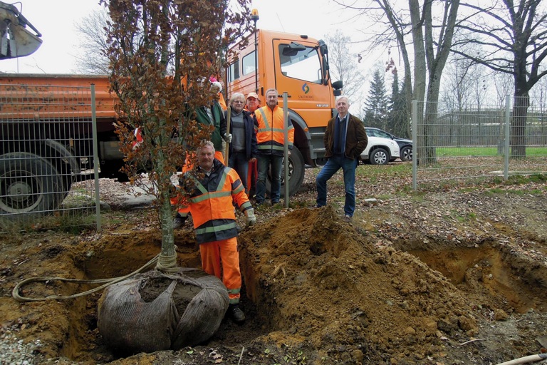 (ty) Zwei Bäume haben die Pfaffenhofener Stadtwerke Pfaffenhofen an der Kletterhalle des Alpenvereins gepflanzt – und auch spendiert. Da die Kletterhalle sich in direkter Nachbarschaft zum künftigen Geländes der Gartenschau „Natur in Pfaffenhofen 2017“ befindet, hatte Gartenschau-Geschäftsführer Walter Karl sich für eine Aufwertung der Außenanlagen des Kletterzentrums stark gemacht. Die Stadtwerke unterstützen die Aktion, bezahlten die beiden etwa fünf Meter hohen Säuleneichen und sorgten auch gleich für die fachgerechte Anpflanzung. Daumen hoch, kann man da nur sagen: Nicht lange reden, sondern machen!