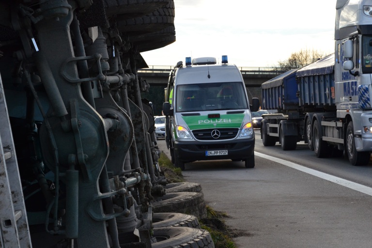(ty) Ein umgestürzter Autokran sorgt auf der Autobahn A9 Richtung Nürnberg für Behinderungen. Aus bislang ungeklärter Ursache war das fünf-achsige Gefährt gegen 10 Uhr zwischen dem Autobahndreieck Holledau und der Anschlussstelle Langenbruck nach rechts von der Farbahn abgekommen und schließlich nach rechts umgestürzt. Die Polizei ist noch vor Ort. Es kommt zu Behinderungen. Nach ersten Informationen der Polizei wurde der Fahrer des Autokrans leicht verletzt. Andere Fahrzeuge waren an dem Unfall nicht beteiligt.