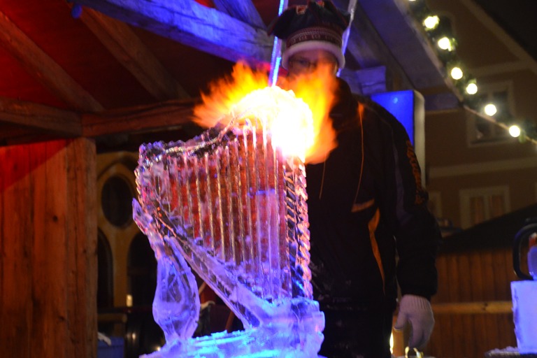 Am heutigen Samstag werden wieder Kutschfahrten durch die City angeboten, der Trachtenverein stellt eine lebendige Krippe dar – und von 16 bis 19.30 Uhr zeigt der Eisschnitzer Christian Staber wieder live, wie er unter anderem mit Hilfe einer Motorsäge und weiteren Werkzeugen aus einem Eisblock die tollsten Skulpturen herausschält. Sogar einen rund zwei Meter hohen Weihnachtsbaum samt Kerzen schuf er im vergangenen Jahr aus Eis. Oder, ganz filigran, eine Harfe. Wer schon mal einen Vorgeschmack auf die Künste von Christian Staber bekommen will, der sollte sich die Bildergalerie unseres Berichts vom Vorjahr ansehen: Skulpturen aus Eis. Und ein Interview mit dem eiskalten Künstler hören Sie hier: "Aus dem Stegreif schaff ich 120 Viecher"