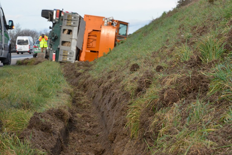 (ty) Am Freitag kurz vor 10 Uhr fuhr ein 23-Jähriger aus dem Kreis Pfaffenhofen mit einem Autokran auf dem rechten Fahrstreifen der Autobahn in Richtung Nürnberg. Etwa drei Kilometer vor der Anschlussstelle Langenbruck kam das 60 Tonnen schwere Fahrzeug nach rechts von der Fahrbahn ab, kippte an der Böschung auf die rechte Fahrzeugseite und grub sich ins Erdreich ein. Der 23-jährige wurde bei dem Unfall leicht verletzt. An Fahrzeug und Böschung entstand ein Schaden von rund 35 000 Euro. Einen plausiblen Grund für das Abkommen nach rechts konnte der Fahrer nicht nennen. Offenbar fehlte es an der nötigen Aufmerksamkeit. Da die Bergung des Fahrzeuges wesentliche Behinderungen des laufenden Verkehrs mit sich bringt, wurde der Autokran erst im Laufe der Nacht nach dem Berufsverkehr geborgen. Die Unfallstelle wurde so lange durch die Autobahnmeisterei abgesichert.