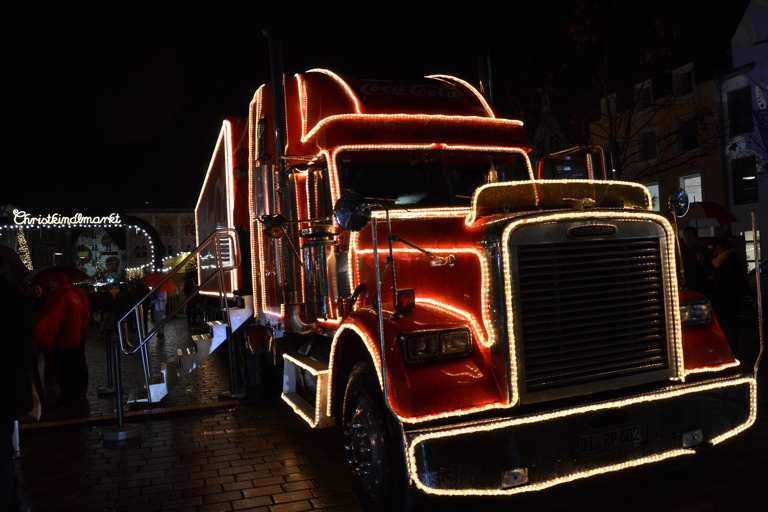 (zel) Der Coca-Cola-Weihnachtstruck hat auf dem Pfaffenhofener Christkindlmarkt Station gemacht. Leider spielte das Wetter nicht so recht, mit – denn Regen passt einfach nicht zu einer g’scheiten vorweihnachten Stimmung. Aber viele Kinder ließen sich die Laune vom Wetter nicht verdrießen und hatten trotzdem ihren Spaß. Die Buben und Mädchen konnten zum Beispiel in einem in dem Truck toll eingerichteten Zimmer ein Foto von sich mit dem Weihnachtsmann machen lassen, das sie dann auch gleich ausgedruckt mit nach Hause nehmen konnten. Auf der Bühne gab es weihnachtliche Live-Musik und in einer kleinen Hütte konnten die Kinder noch von einem Automaten noch weihnachtliche „Selfies“ machen lassen.