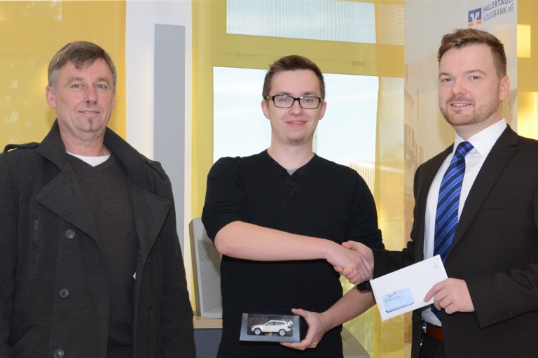 (ty) „Ich kann mein Glück noch gar nicht fassen, mit so einem Weihnachtsgeschenk habe ich wirklich nicht gerechnet“, freute sich Marco Bauer aus Rohr im Kreis Kelheim, als er vom zuständigen Filialleiter der Hallertauer Volksbank, Hubert Holzmayr, mit der frohen Botschaft überrascht wurde. Bevor er aber im April kommenden Jahres seinen „echten“ BMW X3 im Wert von knapp 50 000 Euro entgegennehmen darf, muss er die Wartezeit mit einem Modell im Maßstab 1:43 überbrücken.