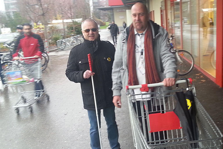 „Ab da hing ich in der Luft“, sagt er. Deswegen war es wie ein kleines Wunder für Paul Trautner, als er auf die Mobilitätshelfer stieß. „Es war ein neuer Lebensabschnitt für mich. Ich bin Woche für Woche von denen abgeholt worden. Sie haben mich zum Arzt gebracht, sind mit mir zum Einkaufen gegangen, haben mir die Haltbarkeitsdaten vorgelesen.“ Das seien so Kleinigkeiten, von denen sich ein Sehender keinen Begriff mache. Haltbarkeitsdatum, Preise vergleichen. „Früher habe ich oft jemanden gefragt, der zufällig am Regal stand. Aber viele sind einfach weitergegangen.“