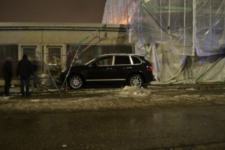 Durch die Wucht des Aufpralls wurde der Opel Astra auf einen davor parkenden Mini-Cooper geschoben. Da die 37-Jährige aufgrund dieses Crashs in Panik geriet, beschleunigte sie ihren Porsche sehr stark. Dadurch kam sie auf der schneeglatten Straße ins Schleudern und kollidierte mit drei weiteren am rechten Straßenrand geparkten Autos. Da die geparkten Fahrzeuge durch den massiven Aufprall zum Teil bis auf die Fahrbahn verschoben wurden, bahnte sich die Porsche-Fahrerin – durch die geparkten Fahrzeuge hindurch – über den Gehweg hinweg, ihren Weg und kollidierte jetzt mit einem Baugerüst. Hier kam der Wagen schlussendlich zum Stehen (siehe Foto).
