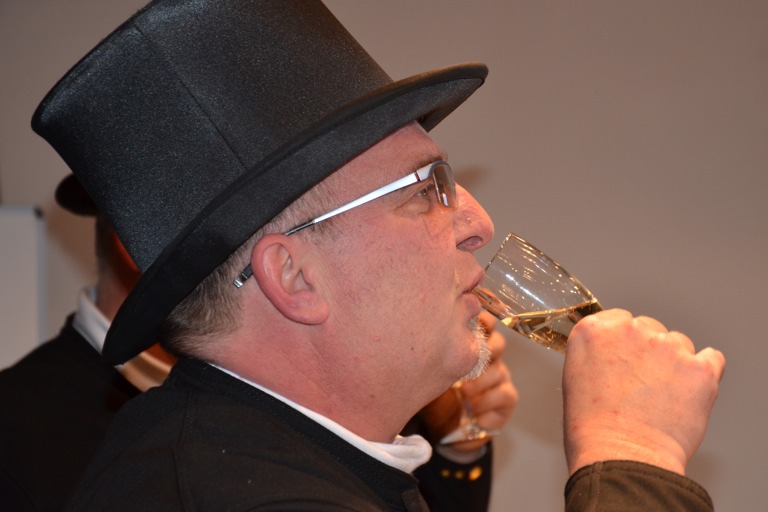 Ein Schluck auf ein gutes 2015! Bezirkskaminkehrermeister Ralf Maul am Zug.