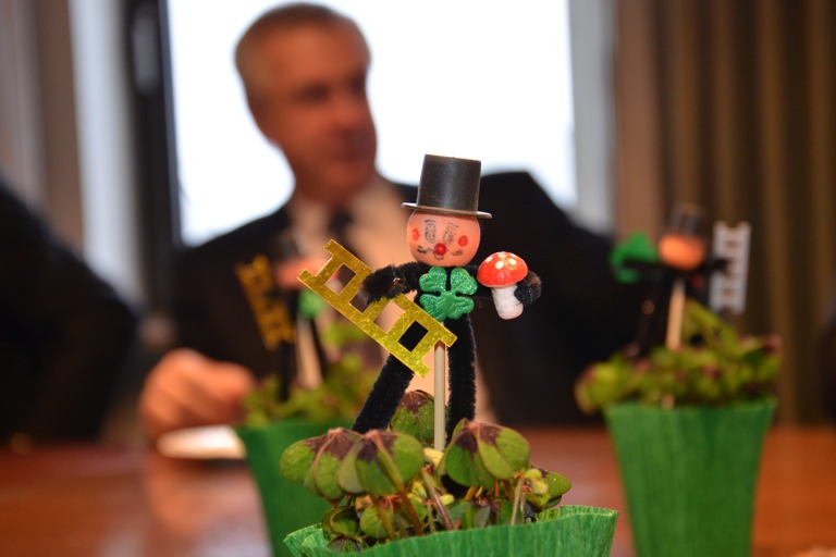 Die besten Wünsche für das neue Jahr überbrachten im Namen ihrer Zunft die beiden Bezirkskaminkehrermeister Ralf Maul und Peter Sixt sowie ihre Berufskollegin Heidi Friesner. Die personifizierten Glücksbringer wünschten Erfolg, beste Gesundheit und hatten auch wieder für jeden ein kleines Präsent dabei: einen Piccolo, eine kleine Kaminkehrer-Figur und einen Glückspfennig zum Aufkleben.