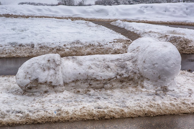 (ty) Es gibt Schneemänner und Schneetiere, es gibt Schneeburgen und Schneekugeln. Ja, aus Schnee kann man viel bauen, da kann man seiner Kreativität freien Lauf lassen. Das haben jetzt unbekannte Künstler in der Nähe der Pfaffenhofener Trabrennbahn bewiesen, in dem sie einen Schneepenis von nicht zu übersehender Größe „errichtet“ haben. Der liegt, wie könnte es anders sein, auf einer Verkehrs-Insel. Eiskalt. Mal sehen, wie lang er angesichts des Tauwetters seine Standfestigkeit noch unter Beweis stellen kann… Vielleicht stellt sich aber ja auch der Winterdienst die klassische Frage: Ist das Kunst oder kann das weg?