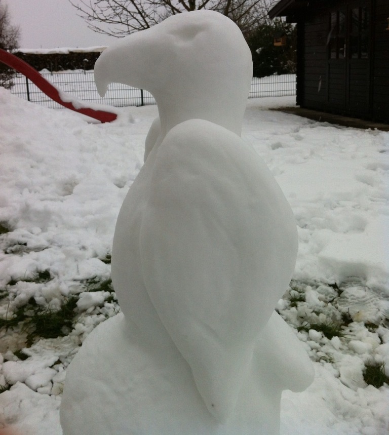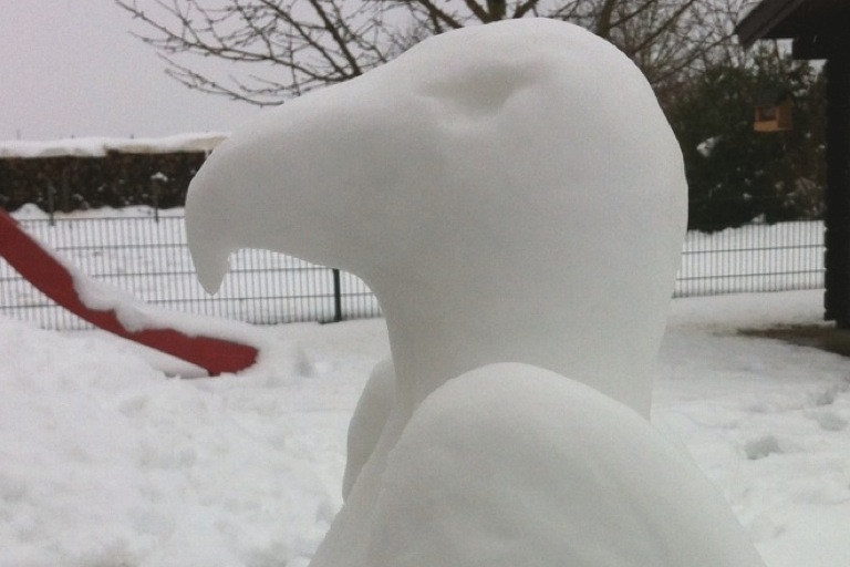 (ty) Familie Muhr aus Königsfeld rastet nicht! Nun hat uns Vater Reinhard zwei weitere Fotos von Schnee-Skulpturen zukommen lassen, die seine Familie geschaffen hat. Er selbst hat mit seiner Tochter einen Olaf-Schneemann gebaut (siehe unten), während seine Frau einen bemerkenswerten Weißkopfseeadler (oder eher Eiskopfseeadler) aus der weißen Pracht gezaubert hat. Bereits gezeigt haben wir Ihnen heute das Foto von dem tollen Schnee-Einhorn, dass die Muhrs ebenfalls kreiert haben sowie weitere Fotos von anderen Kreativen aus der Region. Damit reißt die Serie der Schnee-Figuren nicht ab, die uns per Foto erreichen. Selbstverständlich können Sie uns auch weiterhin Bilder zukommen lassen; einfach per E-Mail an