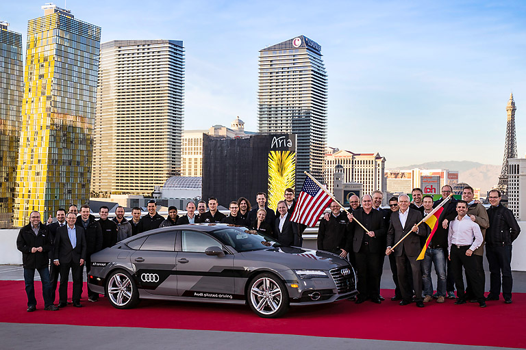 (ty) Die Langstrecken-Testfahrt mit dem Audi A7 piloted driving concept auf dem Highway endete heute planmäßig nach rund 900 Kilometern. Auf der Fahrt vom Silicon Valley nach Las Vegas zur International Consumer Electronics Show (CES) erlebten Journalisten das pilotierte Fahren live auf dem Fahrersitz. Dabei beeindruckte das Konzeptauto besonders mit dem natürlichen Fahreindruck und der harmonischen Funktion in unterschiedlichen Alltagssituationen.