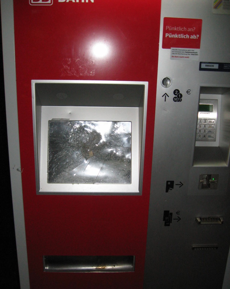 (ty) Unbekannte haben in der Nacht auf Samstag am Bahnhof von Rohrbach einen Ticket-Automaten demoliert und dabei einen Sachschaden von etwa 1000 Euro verursacht. Die Bundespolizei Ingolstadt sucht nach Zeugen, die zur Aufklärung dieser Straftat beitragen könnten.