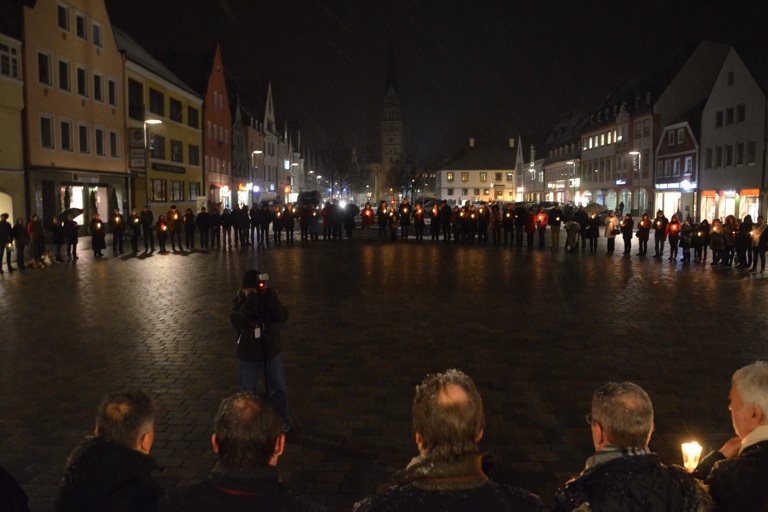 Kundgebung in Pfaffenhofen: 150 Leute versammelten sich heute Abend vor dem Rathaus, legten ein Bekenntnis für das Grundgesetz ab, bildeten einen Lichterkreis und verharrten in Stille