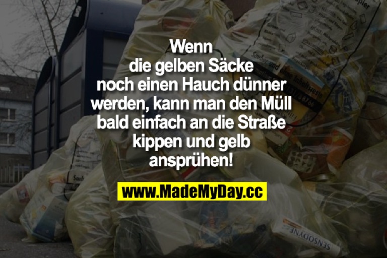 Aus der Seele sprechen dürfte Nerb deshalb ein Internet-Fundstück, das unserer Redaktion jetzt in die Hände gefallen ist: Ein Spruch auf der immer wieder mal recht unterhaltsamen Seite www.mademyday.cc, der genauso gut von Nerb sein könnte, weil er seine liebe Müh mit dem gelben Sack treffender kaum zusammenfassen könnte: „Wenn die gelben Säcke noch einen Hauch dünner werden, kann man den Müll bald einfach an die Straße kippen und gelb ansprühen!“, heißt es da.