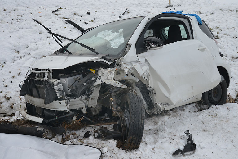 Zwischen Pettenhofen und Egweil prallte eine 49-Jährige heute früh aus bislang unbekannten Gründen an einen Baum – Die Straße war nicht glatt
