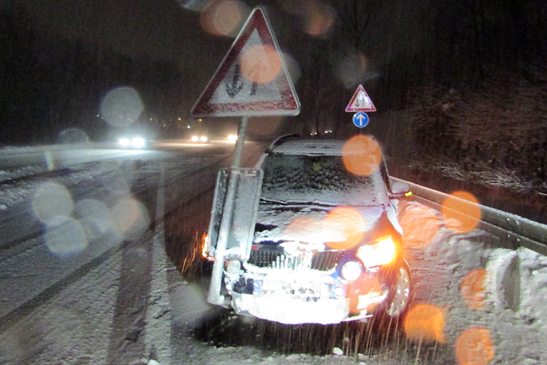 Obwohl ein Verkehrszeichen in seinem Fahrzeug steckte, wollte ein alkoholisierter Falschfahrer seine Fahrt fortsetzen. Gestern in den Abendstunden fuhr ein 57-jähriger Pkw-Fahrer die B 19 Richtung Immenstadt. Beim Beginn des vierspurigen Ausbaus der Straße in Höhe Sonthofen geriet er zuerst auf die Sperrfläche in der Mitte. Anschließend fuhr er entgegen der Fahrtrichtung weiter. Bereits beim Einfahren entgegen der Fahrtrichtung rammte er das dort stehende Verkehrszeichen „Gegenverkehr“. Dieses Verkehrszeichen blieb auch bei der Weiterfahrt aufrecht in der Wagenfront stecken. Nach kurzer Fahrt bemerkte der Fahrer anscheinend, dass er sich auf der falschen Fahrbahn befand und rangierte laut Zeugenaussagen mehrfach auf der Straße. Einem anderen Pkw-Fahrer gelang es den Falschfahrer bis zum Eintreffen der Polizei an der Weiterfahrt zu hindern. Der Grund für sein Fehlverhalten war rasch gefunden. Ein Atemalkoholvortest bei dem Autofahrer ergab über 2,5 Promille.