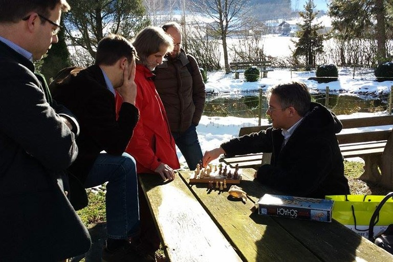 Politik ist vielleicht manchmal wie Schach: Steffen Kopetzky (links, SPD) ist gerade am Zug, Martin Rohrmann (CSU, von links), Andreas Kufer (FW), Manfred "Mensch" Mayer (GfG) und Andreas Herschmann (SPD) sind aufmerksam bei der Sache.