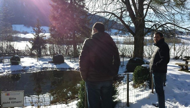 Auszeit von der Klausur: Andreas Herschmann (SPD, links) und Richard Fischer (ÖDP) am Teich.