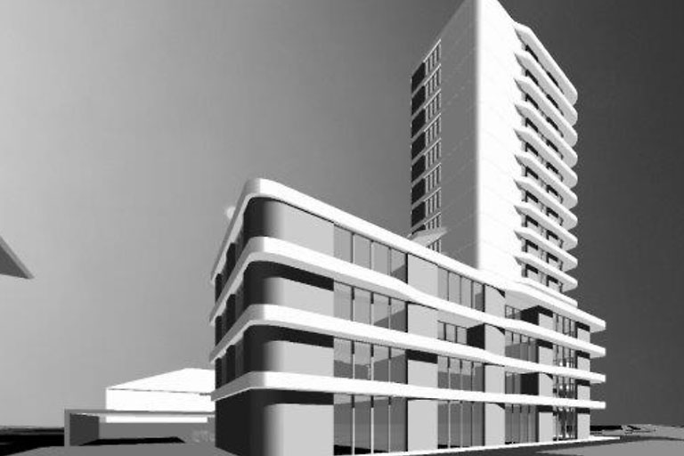 Das vorliegende Bebauungskonzept sieht ein rund 50 Meter hohes Gebäude auf einer viergeschossigen Sockelzone mit gewerblicher Nutzung im Erdgeschoss vor. Der Wohntower bietet in den oberen Etagen einen Rundumblick auf die historische Altstadt und das Glacis. Die Fertigstellung ist für Anfang 2017 vorgesehen.